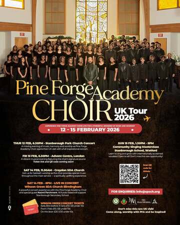 Stanborough Secondary School will be honoured to host the world-renowned Pennsylvania SDA Pine Forge Academy Choir on Thursday 12th February at 6:30 p.m. We are delighted to invite you to this unmissable concert. Please invite friends and family to attend with you. Free admittance. Donations will be collected to support the choir.